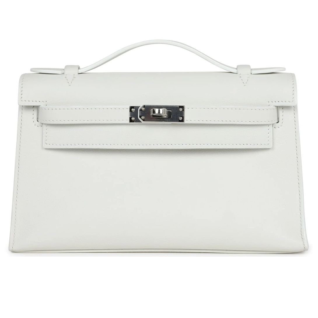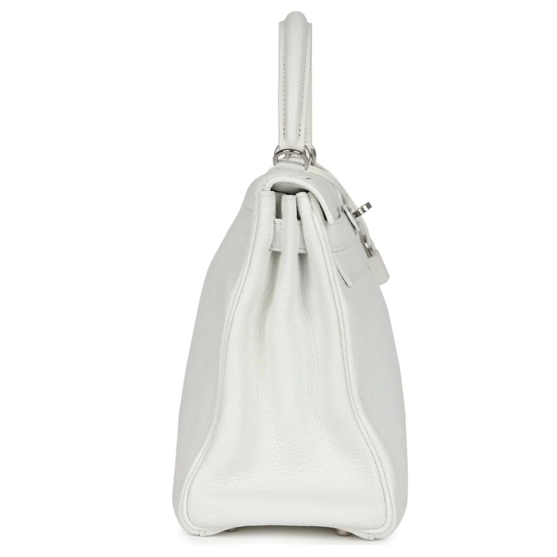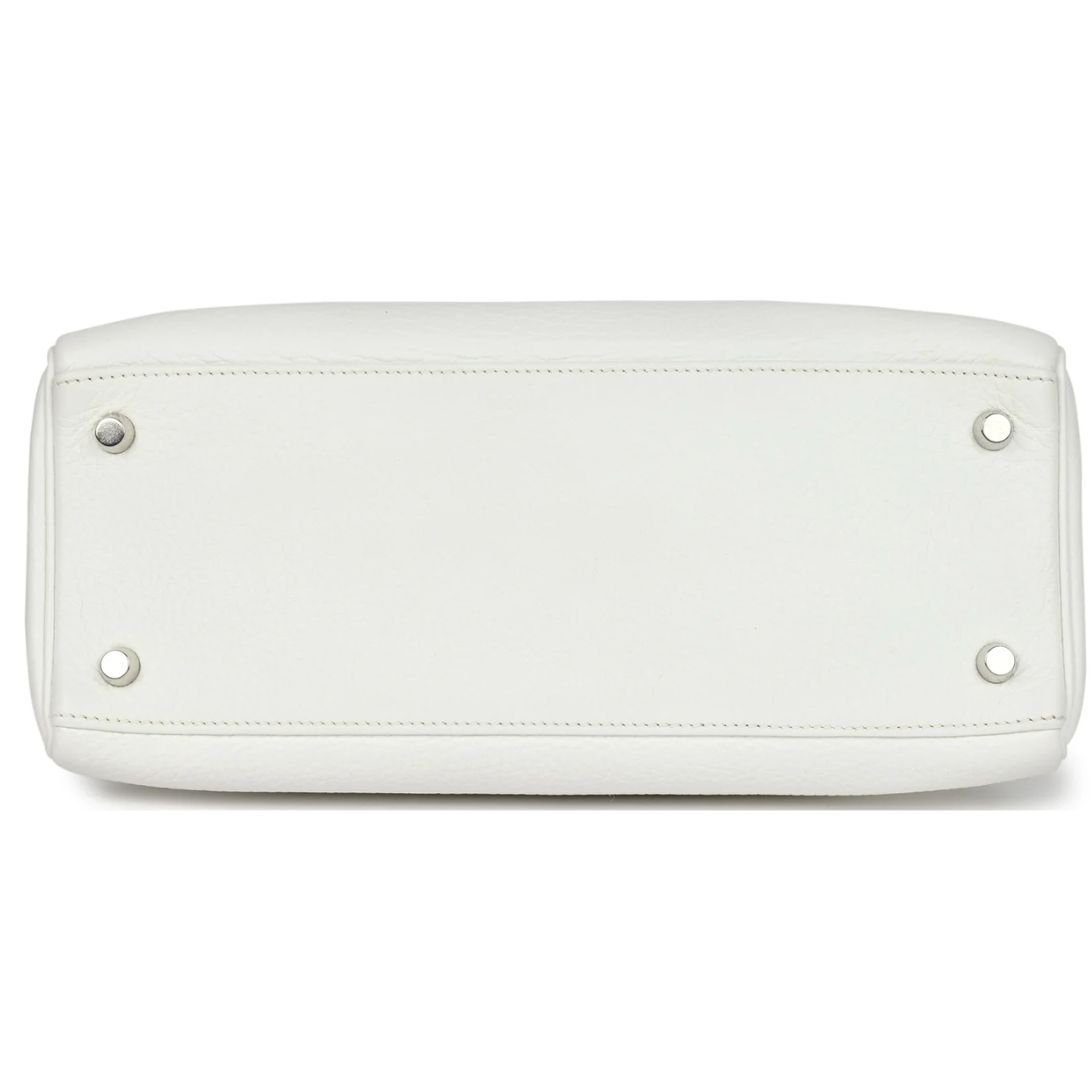 VINTAGE HERMÈS KELLY RETOURNE 28 WHITE CLEMENCE PALLADIUM HARDWARE
