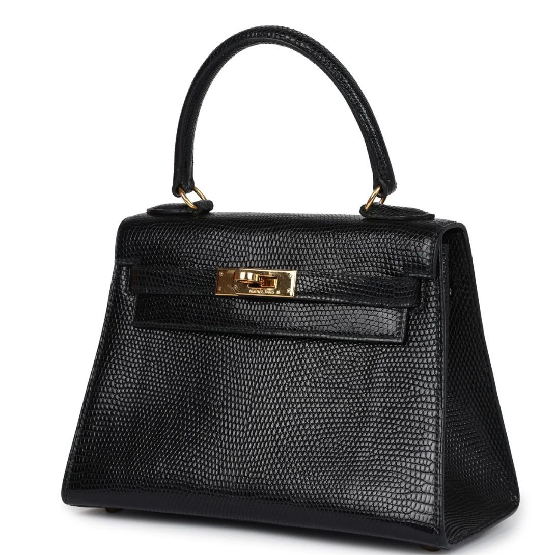 VINTAGE HERMÈS KELLY SELLIER 20 BLACK SHINY ALLIGATOR GOLD HARDWARE