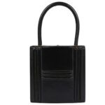 This Vintage Hermès Mini Cadena Lock Bag is a timeless classic, crafted from Black Box Calf leather with gold hardware. The design features tonal stitching, a signature Hermès padlock detail, a hidden push-and-snap lock closure, and a single rolled top handle for effortless elegance.