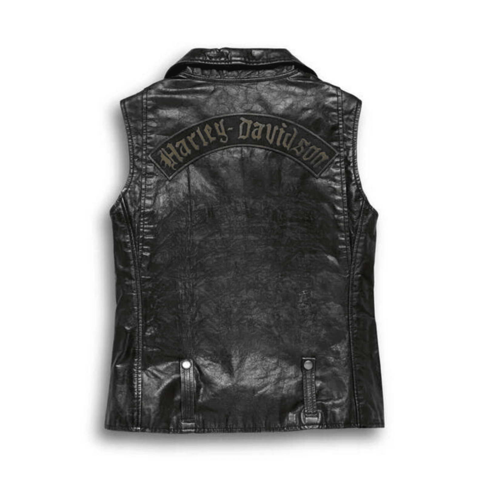 We consider the Women’s Swingarm Leather Biker Vest a work of art. The masterpiece begins with high-quality washed and waxed leather for a vintage look. Highly detailed laser-etched schematics grace the front. Flip to the back for a total contrast—oversized, grungy patches. The biker details (snap lapels, belt loops, and epaulettes) infuse this women’s leather vest with authenticity.