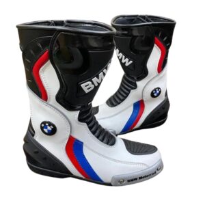 BMW MOTORCYCLE LEATHER BOOTS BLUE, WHITE & BLACK